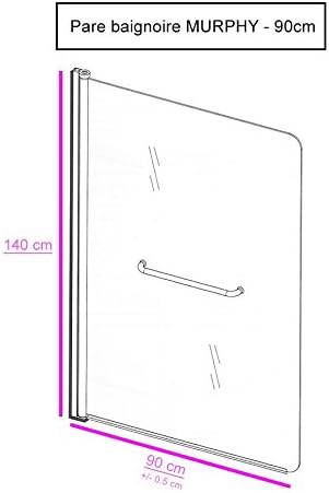 Le pare baignoire murphy 90x140 cm en verre de securite transparent de 6 mm depaisseur a un design astucieux avec sa poignee porte servietteles caracteristiques de cette paroi de douche sont paroi pivotante galbee en verre trempe securit transparent et anticalcaire.